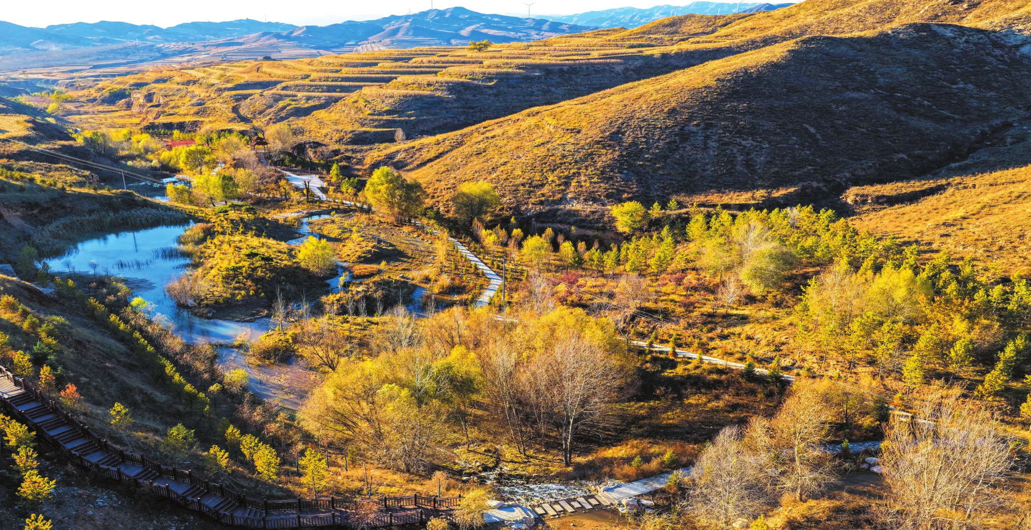 深秋時(shí)節(jié)滹沱河源頭層林盡染